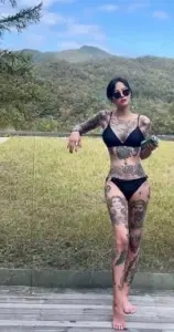 유튜버 이영림 루프탑 수영장에서 알록달록한 끈비키니 몸매