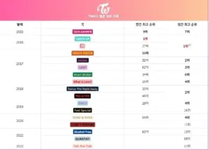 트와이스 노래별 멜론차트 기록jpg