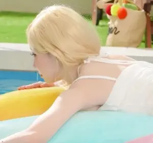 옆으로 누워 요망하게 눌린 가슴골 자랑하는 리즈리사