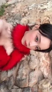 흰 셔츠 속 빨간 나시 은근한 윗슴골 프로미스나인 이나경