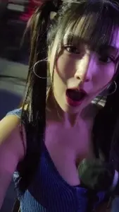 에스파 카리나 포니테일 흰 끈나시 한쪽 가슴 내놓은 핑크후드티