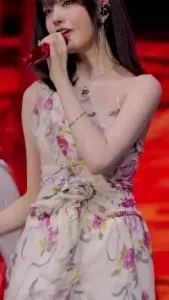아이들 슈화 빨간 꽃무늬 튜브탑 + 타이트한 롱스커트 하체라인