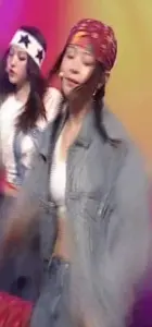 뉴진스 하니 미드 오픈 청자켓.몽글한 흰 CK브라 복부 배꼽