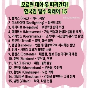 한국인 필수 외래어 TOP 15
