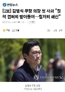 속보) 쿠팡 김범석 첫 사과 “”””많은 국민 실망에 참담함 금할 수 없어””””