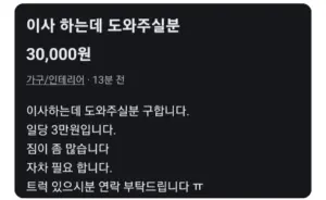당근에 올라온 일당 3만원짜리 알바 수준
