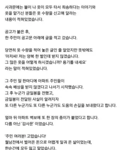 화재로 전부 타버린 어느 세탁소의 사과문 . jpg