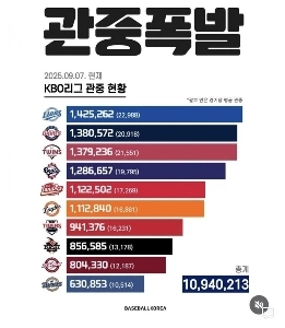 KBO리그 현재까지 관중 현황