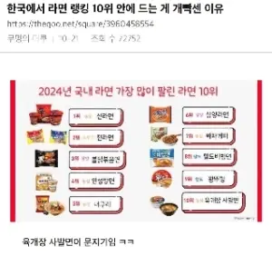 한국 라면 랭킹 톱10 안에 들기 힘든 이유