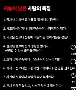 지능이 낮은 사람의 특징