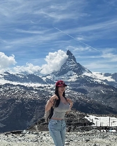 알프스 여행 둘기얏 설산앞에서 회색 반팔티 압도적인 슴가핏