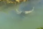 남성은 순식간에 물소 불에 받혀 바닥으로
