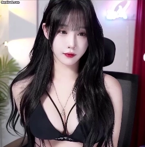 라방 중인 클라씨 원지민 가슴골 슬쩍 보이는 검정 골지 니트