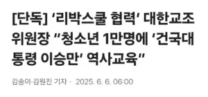 [단독] ‘리박스쿨 협력’ 대한교조 위원장 “청소년 1만명에 ‘건국대통령 이승만’ 역사교육”