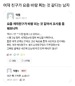 여친이 헬스장 트레이너랑 바람남