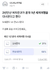 여친이 혼자 1년 세계여행간다하면 보내준다vs반대한다