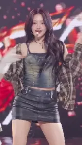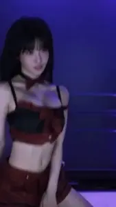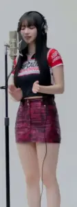 검정 브라끈 삐져나온 빨간 원오프숄더 트리플에스 김채연 슴부먼트