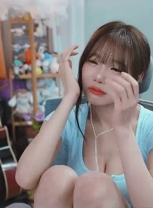 방송방에서 찍은 수련수련 몸스타 화이트 란제리 가슴골