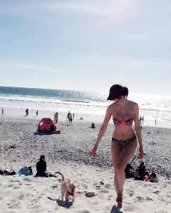 워터밤에서 베이지색 비키니 알가슴골 노출한 쏘블리