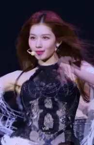 긴 생머리 에스파 윈터.분홍색 시스루 홀터넥 야한 복부 배꼽