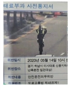 배달 오토바이 전면에 ”스티커 번호판” 부착된다