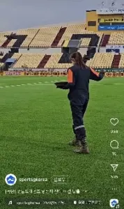 축구장에서 사진 찍는 아이브 이서 엉밑살