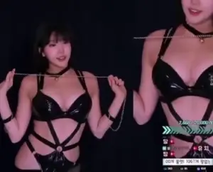 레이스 달린 묵직한 가죽끈 탱크탑 볼륨감 트와이스 지효