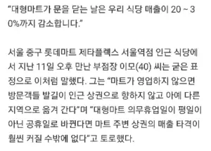 “대형마트 쉬면 인근 상점 매출도 20~30% 감소”