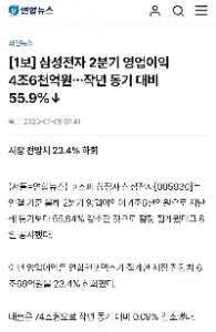 [1보] 삼성전자 2분기 영업이익 4조6천억원…작년 동기 대비 55.9% 감소