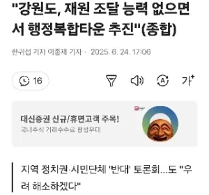 “”””강원도, 재원 조달 능력 없으면서 행정복합타운 추진””””(종합)