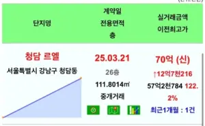 청담르엘 46평 70억 거래 떴다 !!!