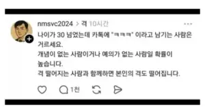 나이 30에 “”””ㅋㅋㅋ””””쓰는 사람 거르세요.jpg