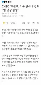 CNBC “”””트럼프, 미중 관세 휴전 90일 연장 결정””””
