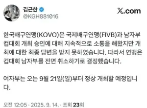 (공식) 남자배구 컵대회 하루만에 대회 전면 취소 결정
