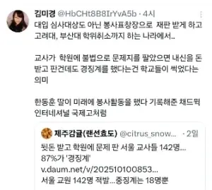 봉사 표창장 4년 vs 문제지 유출 경징계
