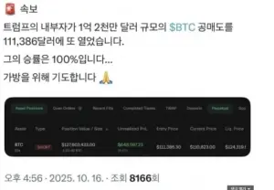 승률 100% 트럼프 내부자 계좌 근황
