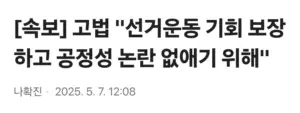 [속보] 고법 “”””선거운동 기회 보장하고 공정성 논란 없애기 위해””””
