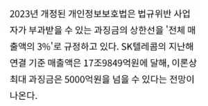 SKT 과징금 (이론상) 최대 5천억