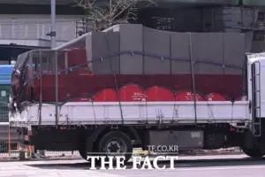 한남동 관저에서 나오는 이삿짐 트럭 사진