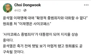 “”””윤석열은 죽기원희룡도 곧 구속될 것””””