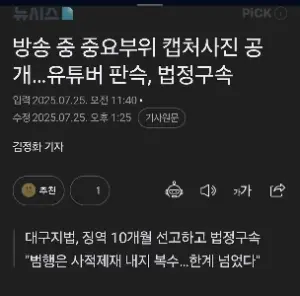 유튜버 판슥 징역 10개월 구속