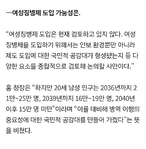 국방부 : 여성징병 안 한다