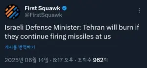 이스라엘 국방장관 “”””미사일 계속 쏘면 테헤란 불바다 될 것””””