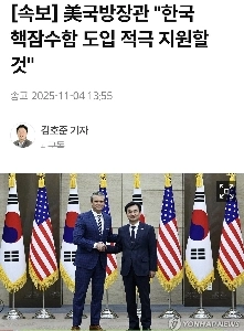 속보 미 국방장관 한국 핵잠수함 도입 적극 지원할것