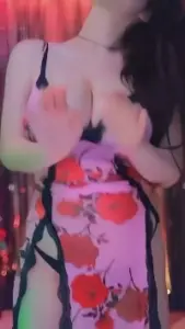 그릴래영 핑크색 꽃무늬 란제리 거유 가슴골