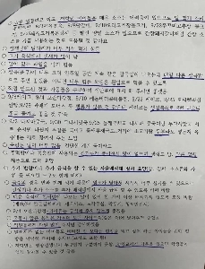 부장교사들이 급식 관련 회의 진행 후, 급식 요구사항을 적어 영양교사에게 전달한 내용