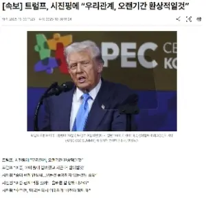 [속보] 트럼프, 시진핑에 “우리관계, 오랜기간 환상적일것”