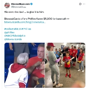 필리스 카렌이 빼앗아간 홈런공을 5천달러에 사겠다는 기업이 나타담 ㄷㄷㄷㄷㄷㄷㄷㄷㄷㄷ
