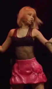 1열 뒤 + 밑에서 올려찍은 르세라핌 김채원 가죽핫팬츠 엉덩이핏