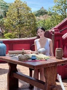 은색 홀터넥 의상 가슴골 테이블에 얹어놓은 유부녀 꽃빵